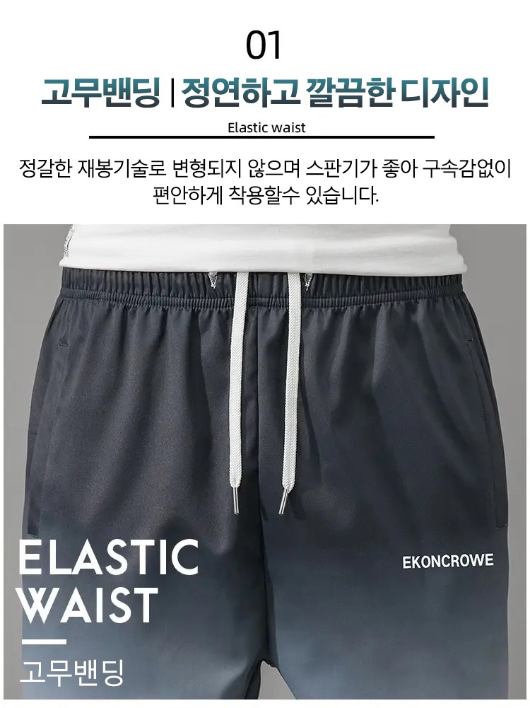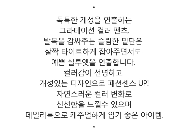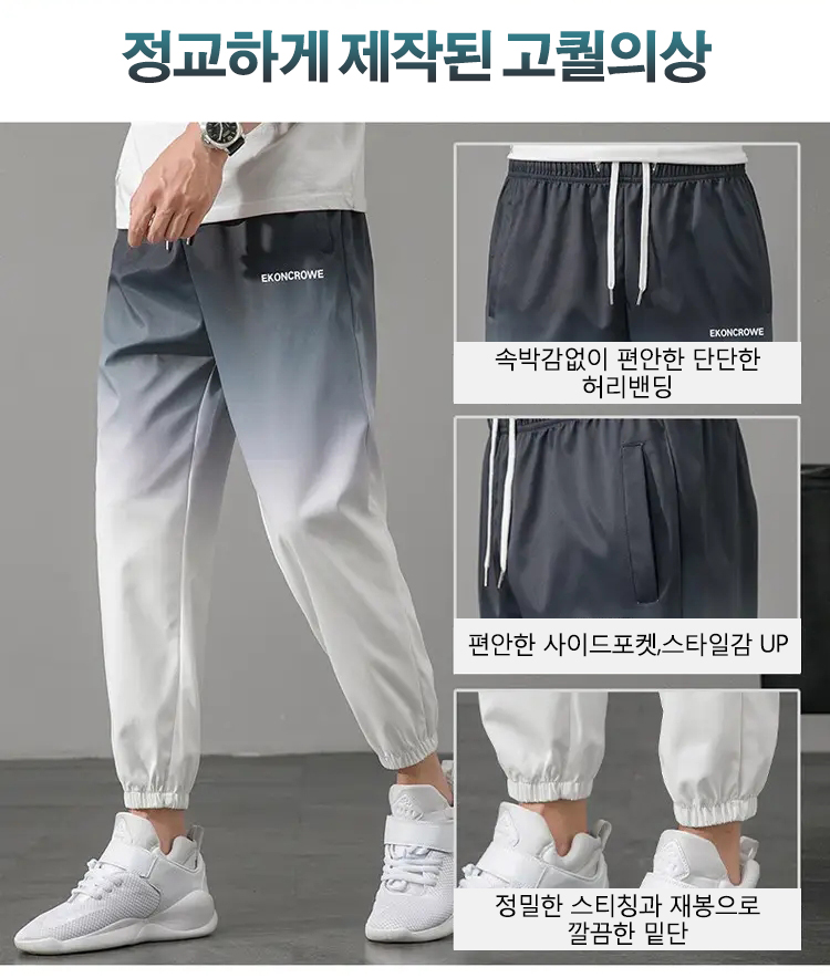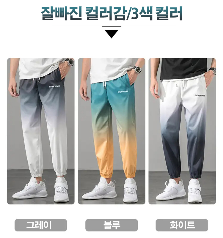 독특한 그라데이션 컬러로 포인트를준 남성 팬츠,섬세한 디테일감으로 깔끔한 팬츠,아이스 쿨링 원단으로 쾌적하고 편안한 착용감,데일리로 캐주얼하게 입기좋은 아이템! 지금 구매시 ₩47,900/2벌 ₩64,800/4벌